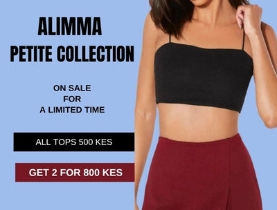 Alimma Petite is our collection of tops in size S! All tops cost 500 KES. If you buy two tops, you pay only 800 KES and save an additional 200 KES.