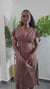 The Meklit dress is a stylish and elegant brown bodycon dress featuring ruched detailing and a sleek, sleeveless design. This long, figure-hugging dress is perfect for evening events or formal occasions. Crafted from medium-stretch knitted fabric, the Meklit dress ensures a comfortable yet form-fitting...- KSh1,800.00
