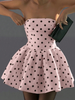 1 x Polka Dot Print Cropped Halter Butterfly Back Ruched Waist A-Line Short Dress
