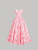 Floral Print Bustier Cami Dress with contrast striped waist corset design. A boho-inspired summer favorite featuring ruched bust details, high waist fit, and flared hem for a feminine silhouette.