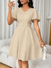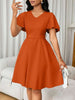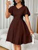 Elegant mint green A-line dress with a flattering V-neck and flounce sleeves. Designed with a high waist, belt, and zipper details, it’s perfect for weddings and festive occasions.