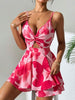 Playful boho cami romper with twist front, tie waist, and vibrant plant prints, perfect for beach vacations, casual dates, and sunny outings with a breezy, stylish, and confident summer vibe.