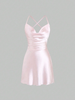 This elegant pink satin swing dress features a flattering slim fit, flared hem, and criss-cross backless design. Perfect for parties and festive occasions, offering a soft, semi-sheer finish with a luxurious draped