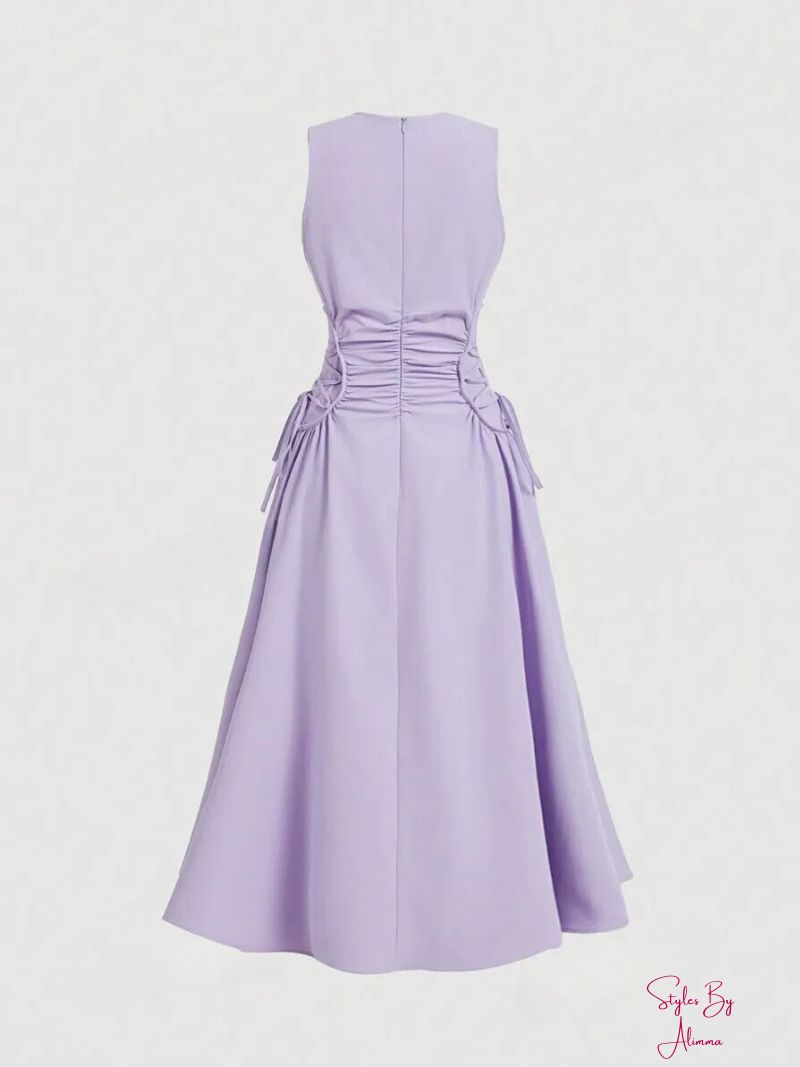 Elevate your style with this elegant mocha brown A-line dress. Featuring a flattering high waist, ruched detailing, and a drawstring design, its flared hem adds graceful movement to your look.