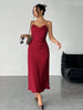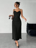 The Pauline dress radiates effortless elegance and charm. Designed with delicate spaghetti straps and a graceful draped silhouette, this long mermaid-style gown flatters the figure naturally. Its backless cut and flowing hemline create a striking, polished look perfect for formal evenings, weddings, and festive celebrations such as Ramadan or Eid. Made from high-quality woven polyester, this piece combines luxury with comfort for every elegant occasion.