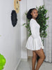 1 × Women's Elegant Fitted Round Neck Bell Sleeve Bubble Short Dress